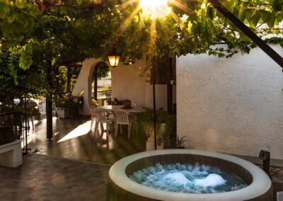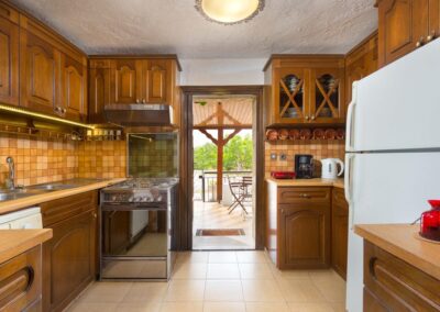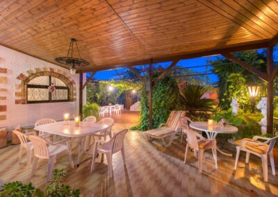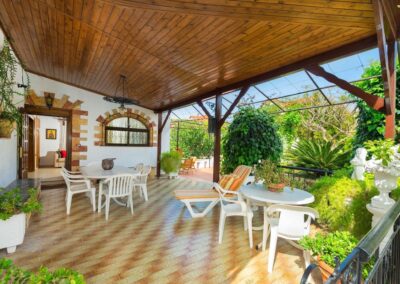 Villa has 2 fully air-conditioned bedrooms with a double bed and a bathroom with a bathtub. Also, it has a fully equipped kitchen and a sitting area. The living room has a screen TV and free Wi-Fi access throughout the property. The outdoor area offers an outstanding garden view with three sitting/dining areas. Also, there’s a BBQ installation to enjoy a gathering with your loved ones. The garden is fenced all the way around and has a private entrance to the property and its’ parking area.